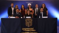 El evento, que se llevó a cabo en el salón Cristal de la Zona UG, reunió a titulares de la Secretaría General de la UG, Dr. Salvador Hernández Castro; de la Secretaría Académica, Dra. Diana del Consuelo Caldera González; de la Secretaría de Gestión y Desarrollo, Dra. Graciela Ma. de la Luz Ruiz Aguilar; las y los directores de las ENMS, así como representantes del personal académico, administrativo y comunidad estudiantil de las Escuelas de Nivel Medio Superior de Guanajuato, Celaya y Moroleón.