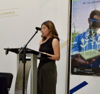 Carolina Chávez Alcocer, en representación de la comunidad estudiantil, invitó a las y los estudiantes a aprovechar este espacio de encuentro y reflexión con personas expertas en el campo de la Agrónica.