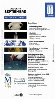 Por parte de los Campus universitarios, el Campus León invita a la exposición "Carteles por el agua", de la Cuarta Bienal Internacional de Cartel Oaxaca, que continuará hasta el 12 de septiembre en la Sede El Campestre. En la sede Aquiles Serdán núm. 924, estará la exposición "A través de mis ojos"; la inauguración se realizará este 11 de septiembre a las 10:00 horas. Para finalizar, consulta la convocatoria "La frase del mes". Más informes al correo electrónico Esta dirección de correo electrónico está protegida contra spambots. Usted necesita tener Javascript activado para poder verla. o al teléfono 477 267 4900, extensión 3809 y 3821.