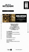 También a las 19:00 horas, pero en el Teatro Principal, el 19 de septiembre los instrumentos de viento se unen para dar un concierto con el Ensamble Zephyrus, puesta instrumental armonizada por Victor Frausto en la flauta, Héctor E. Fernández en el oboe, Hugo Manzanilla en el clarinete, Michelle Pettit en el corno francés y Ariel Rodríguez en el fagot. Los vientos interpretarán Kleine Kammermusik für fünf Bläser, de Paul Hindemith; Four Bagatelles for woodwind quartet, de Andrey Rubtsov; Quatuor a Vents, de Jean Françaix, y Le Tombeau, de Couperin de Maurice Ravel. Venta de boletos en la taquilla del Mesón de San Antonio.