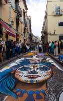 “El tapete de la muerte es una tradición que se lleva a cabo en la ciudad de Guanajuato desde hace 18 años. La primera vez se realizó con la participación de una docente de la UG y de 14 estudiantes de la “prepa oficial”, fue creada porque en Manos Unidas nos dimos cuenta de que faltaba algo para tener a la muerte omnipresente”, compartió en entrevista, Verónica Chacón, coordinadora de eventos internacionales de la Asociación Civil Manos Unidas de Guanajuato y organizadora del evento de Tapetes de la Muerte.