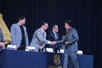 Posteriormente, se otorgó el reconocimiento “Maestro Cuauhtémoc Ojeda Rodríguez” a Maximiliano García Ramírez y Carlos Ernesto Orozco Esparza, por ser los mejores promedios de la generación agosto 2020 - junio 2025 de la Licenciatura en Derecho.