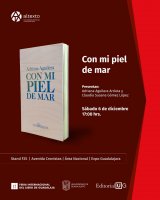 Además, el sábado 06 de diciembre a las 17:00 horas, se presentará el poemario Con mi piel de mar, de la Colección “Cocodrilos”, de la maestra Adriana Aguilera Arrieta, con la participación de la Rectora General de la UG, Dra. Claudia Susana Gómez López, y la autora.