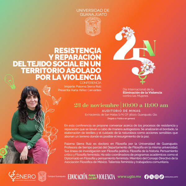 La presente programación se une a las actividades conmemorativas del 25 N, Día Internacional de la Eliminación de la violencia contra la mujer. Se trata de una de las violencias más extendidas en el mundo, atraviesa las fronteras de la racialización y la clase, se manifiesta en todos los contextos y constituye un problema urgente de salud. Debido a su signo: silenciosa, difícil de ver, envuelta en una serie de circunstancias vitales como la maternidad, el amor y los lazos familiares, la violencia contra las mujeres ha tenido bifurcaciones incontables. Lo mismo sucede con su resistencia y sobrevivencia. Los cuidados que las mujeres han brindado históricamente a la población humana y no humana también nos han alcanzado a nosotras.