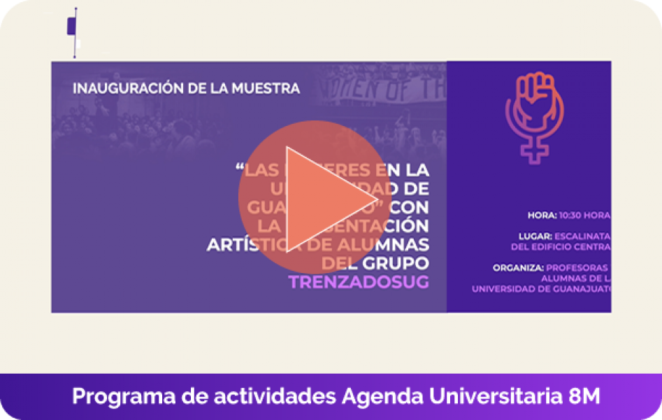 En la Universidad de Guanajuato, generamos una agenda de eventos y actividades que suma al fortalecimiento de los derechos de las mujeres, la apertura de los espacios de diálogo y la consolidación de plataformas de expresión para las mujeres universitarias:
